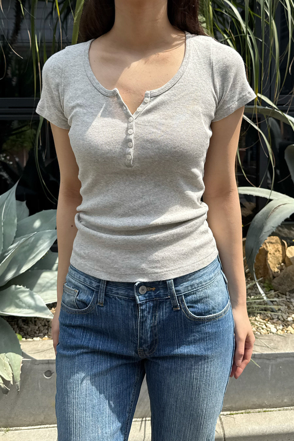 フィット感のあるトップス。半袖、スクープネック、フロントボタン仕様。素材 : 綿100%サイズ : 着丈60cm、バスト64cm製造国 : スイス